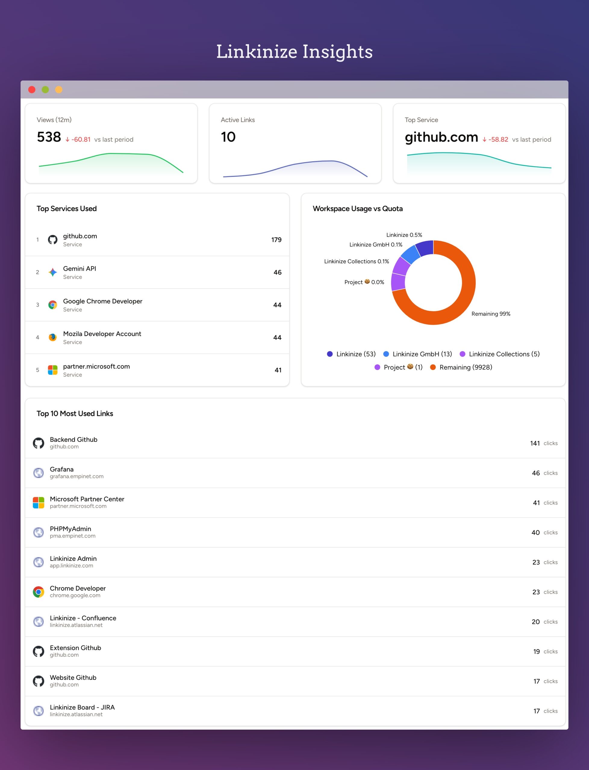 Not every team member needs access to every link. Group links by workspace, and set permissions accordingly—view, edit, or admin.