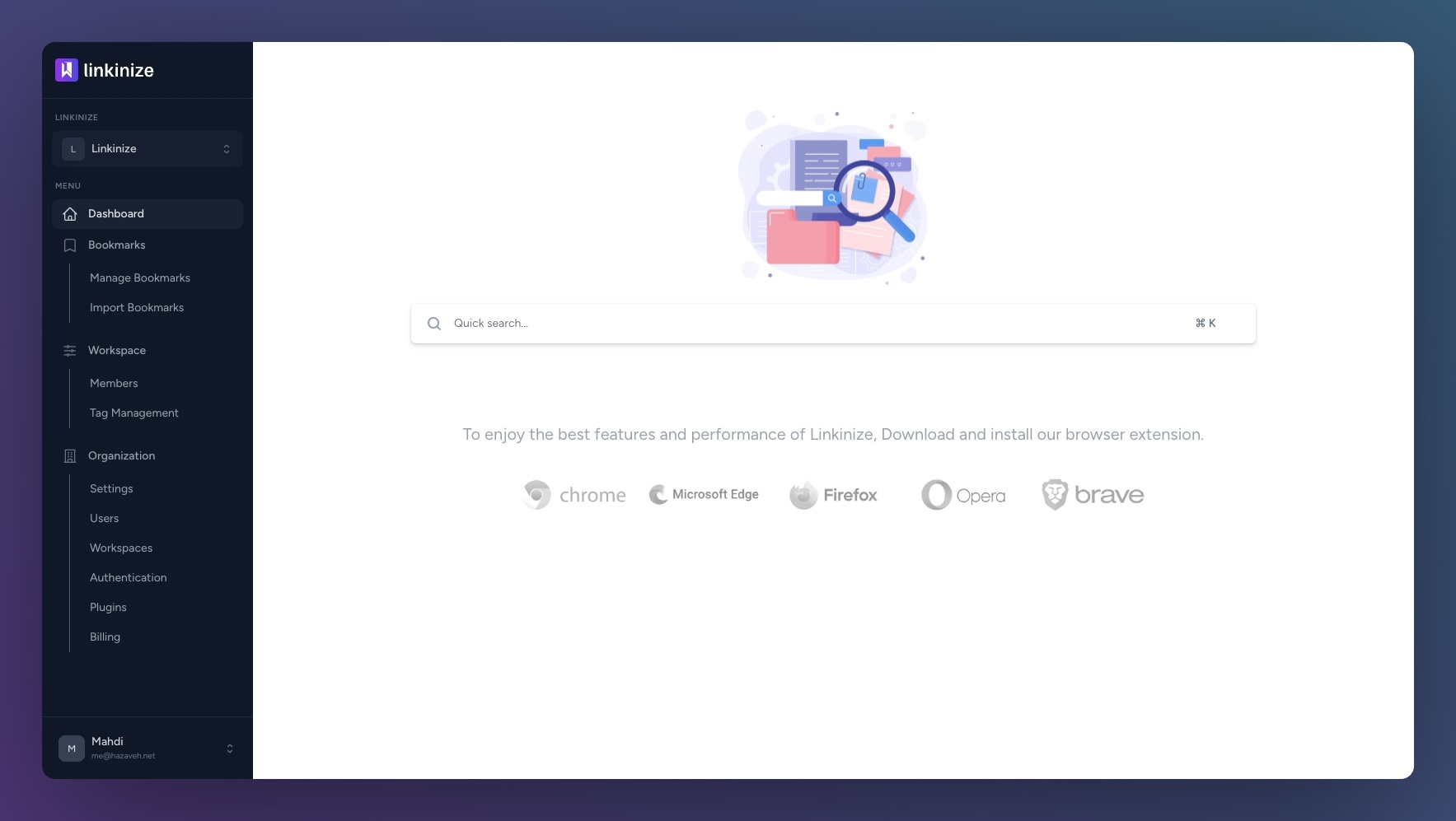 With Linkinize, you can create multiple workspaces—one for each department or role—and pre-fill them with bookmarks. New hires get instant access to their workspace on their first day, dramatically cutting down setup time.